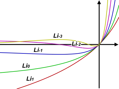 así, el dilogaritmo es una integral del logaritmo, el trilogaritmo del dilogaritmo y así continuamente. Para valores enteros negativos de s, el polilogaritmo es una función racional.