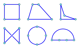 Los seis cuadriláteros que se muestran son realizaciones distintas del cuadrilátero abstracto, cada uno con diferentes propiedades geométricas. Algunos de ellos no se ajustan a las definiciones tradicionales de un cuadrilátero y se dice que son realizaciones infieles. Un politopo convencional es una realización fiel.