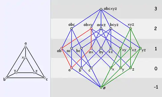 Por ejemplo, en el triángulo abc, la faceta en ab es ab/b = {∅, a, b , ab}, que es un segmento de línea.