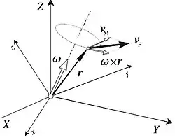 siendo la velocidad angular asociada a la rotación del referencial móvil con respecto al referencial fijo.