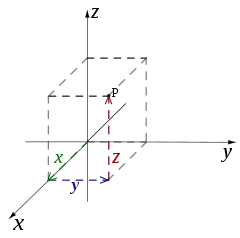 Podemos representar la posición de una partícula o de un punto del espacio, respecto de un sistema de ejes, mediante las coordenadas cartesianas (x,y,z) del punto, o mediante el vector de posición de dicho punto respecto al origen "O" del sistema de coordenadas (Figura 1). Dicho vector de posición se define como el vector que tiene como origen el punto "O" y como extremo el punto "P", es decir, el vector aplicado en el punto "O" que tiene como componentes las coordenadas cartesianas x, y, z, del punto "P". Escribiremos