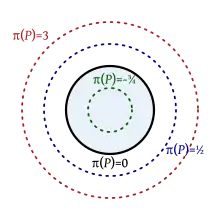 El primer lugar geométrico a considerar es aquel formado por los puntos cuya potencia respecto a una circunferencia fija es la misma. Dicho lugar geométrico corresponde a una circunferencia concéntrica a la dada, exterior si la potencia es positiva, interior cuando la potencia es negativa.