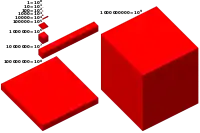 Visualización de las potencias de 10 desde 1 a un millardo.