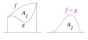 Dado que el área entre las dos funciones y es tan grande como el área calculada mediante la diferencia de las funciones , entonces y cumplen el principio de Cavalieri.