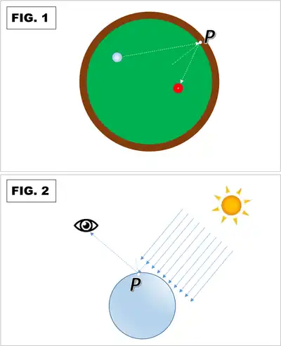 - Mecánico: Encontrar el punto en el borde de una mesa de billar circular hacia el que hay que lanzar una bola para alcanzar a la otra.