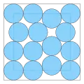 - Círculos empacados en un cuadrado: estrechamente relacionado con los puntos de dispersión en un cuadrado unitario con el objetivo de encontrar la mayor separación mínima, d n , entre puntos. Para convertir entre estas dos formulaciones del problema, el lado cuadrado de los círculos unitarios será L= 2+2/dn. Se han probado soluciones óptimas para n≤30.