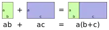 En este caso la propiedad distributiva es usada al revés comparada con los casos en los ejemplos anteriores. Sea