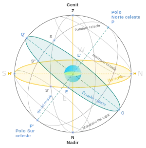 Lo característico de esta proyección es que es más subjetiva, porque propone la posición del observador P en el centro y representa directamente mediante coordenadas locales el acimut y altura del punto A en la esfera celeste. Se utiliza en arquitectura e ingeniería para representar la posición del Sol a lo largo del año, y calcular asoleamientos y sombras que produce.