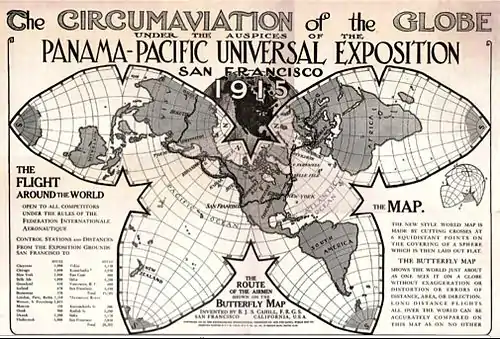 La proyección no es ni conforme ni de igual área,[8] compuesta por arcos circulares unidos, sin meridianos ni paralelos intermedios, en la que la superficie esférica de la Tierra se divide en ocho octantes, cada uno aplanado en forma de un triángulo Reuleaux. Si se transfiere a un soporte elástico, sería posible cubrir con ellos la superficie de un modelo del globo terráqueo.[9][10]