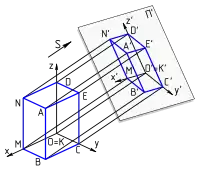 - Axonométrica: el plano de proyección no es normal a un eje principal, por lo que el objeto se ve en escorzo.