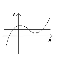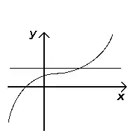Una línea horizontal es una línea recta y sin pendiente que discurre de izquierda a derecha. Dada una función (es decir, una aplicación de los números reales en los números reales), se puede determinar si es una función inyectiva observando las líneas horizontales que se cruzan con la gráfica de la función. Si alguna línea horizontal corta el gráfico en más de un punto, la función no es inyectiva. Para ver esto, basta tener en cuenta que los puntos de intersección tienen el mismo valor (porque se encuentran en la línea ) pero diferentes valores de , lo que por definición significa que la función no puede ser inyectiva.[1]