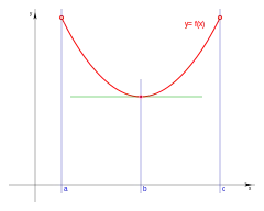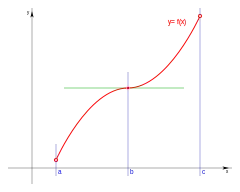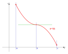 Con dominio de definición , siendo continua y derivable en el intervalo y un punto de ese intervalo: