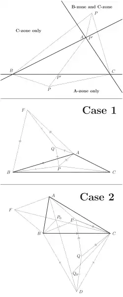 - La intersección de dos de estas rectas es el punto de Fermat.