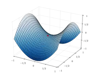 Matemáticamente se define como un punto de una función en el que la primera derivada es nula, mientras que el signo de la segunda derivada (curvatura) depende de la dirección en que se calcule. Si en un punto de una función de dos variables el gradiente es cero, sólo puede tratarse de un máximo, un mínimo o un punto de silla.