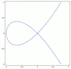 La curva algebraica plana (una curva cúbica) de ecuación y2x2(x + 1) = 0 se cruza a sí misma en el origen (0,0). El origen es un punto doble de esta curva. Es singular porque una sola tangente puede no estar definida correctamente en este punto