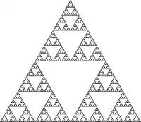 Imagen recursiva formada por un triángulo de Sierpinski. Cada triángulo está compuesto de otros, compuestos a su vez de la misma estructura recursiva.