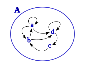 - Un grafo dirigido: Cada miembro de X corresponde a un vértice; una arista dirigida de x a y existe si, y solo si, (x,y) ∈ R.