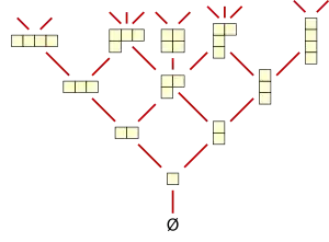 - El retículo de Young dado por la inclusión que ordena la tabla de Young representando particiones enteras.