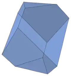 Un caso particular de romboedro es el que se halla truncado por sus vértices agudos, produciendo seis caras idénticas con forma de pentágono irregular, y dos caras triangulares regulares, paralelas entre sí. En algún caso se busca el poliedro que tenga todos sus vértices en una esfera circunscrita.
