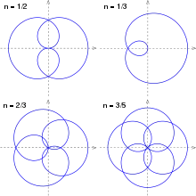 En general, cuando es un número racional en forma de fracción irreducible , donde y son números enteros distintos de cero, el número de pétalos es el denominador de la expresión .[10] Esto significa que el número de pétalos es si tanto como son impares, y en caso contrario.[3]