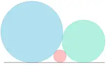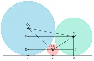 donde r1, r2, r3 son respectivamente el radio de la circunferencia rojo, verde y azul. Este problema es un caso especial del teorema de los círculos de Descartes cuando la cuarta circunferencia tiene curvatura cero. Puede resolverse aplicando el teorema de Pitágoras.