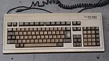 14. «NEC (PC-9800シリーズ)» (html). Okqubit Net (en japonés). 25 de diciembre de 2016. Archivado desde el original el 25 de diciembre de 2016. Consultado el 11 de febrero de 2018. «キーボードはPC-9801Vと印刷されている。 本体前面にキーボード接続口があるため、キーボード側のコネクタはL字型に曲がったものを採用している。 ».