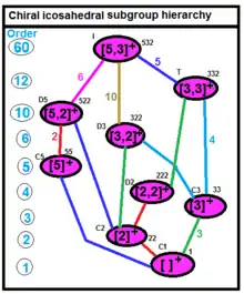 • Ih , el grupo icosaédrico completo (tema de este artículo, también conocido como H3)