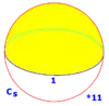 El dominio fundamental para el grupo de rotación icosaédrico y el grupo icosaédrico completo están dados por: