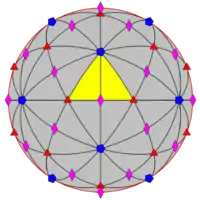 El grupo de simetría completo (incluidas las reflexiones) se conoce como el grupo de Coxeter H3, y también está representado en la notación de Coxeter por [5,3] y posee un diagrama de Coxeter-Dynkin .