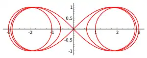 - Si c = R - r la curva resultante es una lemniscata. En el caso particular en el que R = 2r se obtiene la lemniscata de Bernouilli, utilizada como signo del infinito matemático desde que John Wallis ideara esta notación en 1655. La ecuación cartesiana que se obtiene así para la lemniscata de Bernouilli es