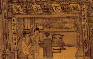 En El festival Qingming junto al río(fig.1) pintado por Zhang Zeduan (1085–1145) durante la dinastía Song (960-1279), se muestra un suanpan al lado del libro de cuentas y de prescripciones, sobre el contador de un boticario (aunque la identificación del objeto con un ábaco es materia de debate).[2]
