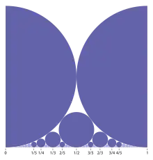 Por ejemplo, C[2/5] es tangente a C[1/2], C[1/3], C[3/7], C[3/8] etc.
