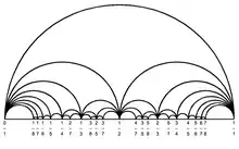 Por ejemplo, 3⁄8 tiene dos expansiones en fracciones continuas [0,2,1,1,1] y [0,2,1,2], y sus vecinos en F8 son 2⁄5, que puede expandirse como [0,2,1,1], y 1⁄3, que puede expandirse como [0,2,1].