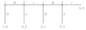En el juego que se muestra en el ejemplo hay dos jugadores. El jugador 1 mueve primero y elige F o U. El jugador 2 ve el movimiento del jugador 1 y elige A o R. Si el jugador 1 elige U y entonces el jugador 2 elige A, entonces el jugador 1 obtiene 8 y el jugador 2 obtiene 2.