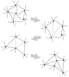 Por la fórmula de Euler para grafos planos, G tiene 3n − 6 aristas. De manera equivalente, si se define la deficiencia de un vértice v en G como 6 − grado(v), la suma de las deficiencias es 12. Dado que G tiene al menos cuatro vértices y todas las caras de G son triángulos, se deduce que cada vértice en G tiene un grado de al menos tres. Por lo tanto, cada vértice en G tiene deficiencia como máximo tres, por lo que hay al menos cuatro vértices con deficiencia positiva. En particular se puede elegir un vértice v con cinco vecinos como máximo que sea diferente de a, b y c. Sea ahora G', que se obtiene quitando v de G y retriangulando la cara f formada quitando v. Por inducción, G' tiene una reintegración mediante segmentos rectos combinatoriamente isomórfica en la que abc es la cara exterior. Debido a que la reincrustación de G' era combinatoriamente isomorfa a G', al quitarle las aristas que se agregaron para crear G', queda la cara f, que ahora es un polígono P con cinco lados como máximo. Para completar el dibujo de un nueva incrustación isomórfica combinatoria mediante segmentos rectos de G, v debe colocarse en el polígono y unirse mediante líneas rectas a los vértices del polígono. Por teorema de la galería de arte, existe un punto interior a P en el que se puede colocar v de manera que las aristas desde v hasta los vértices de P no crucen ninguna otra arista, completando la prueba.