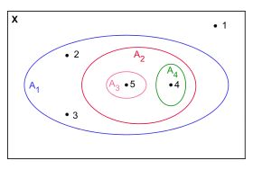 - Hall, Jr., 1986, pg. 51.También es posible tener infinitos conjuntos en la familia, pero el numero de conjuntos en la familia debe ser entonces finito , contado con la multiplicidad.