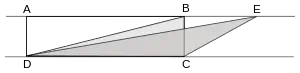 - Euclides Los Elementos, proposición I.36 → «Los paralelogramos que tienen las bases iguales y están contenidos entre las mismas paralelas, son iguales entre sí.»