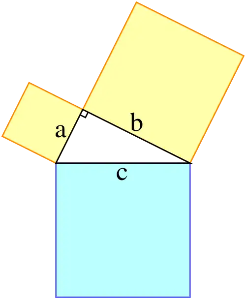 En matemáticas, el teorema de Pitágoras es una relación en geometría euclidiana entre los tres lados de un triángulo rectángulo. Afirma que el área del cuadrado cuyo lado es la hipotenusa (el lado opuesto al ángulo recto) es igual a la suma de las áreas de los cuadrados cuyos lados son los catetos (los otros dos lados que no son la hipotenusa). Este teorema se puede escribir como una ecuación que relaciona las longitudes de los lados 'a', 'b' y 'c'. Es la proposición más conocida entre las que tienen nombre propio en la matemática.[1] El teorema de Pitágoras establece que, en todo triángulo rectángulo, la longitud de la hipotenusa es igual a la raíz cuadrada de la suma del área de los cuadrados de las respectivas longitudes de los catetos.