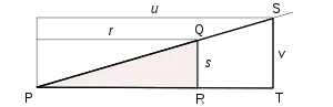 Los triángulos PQR y PST son semejantes, de manera que: