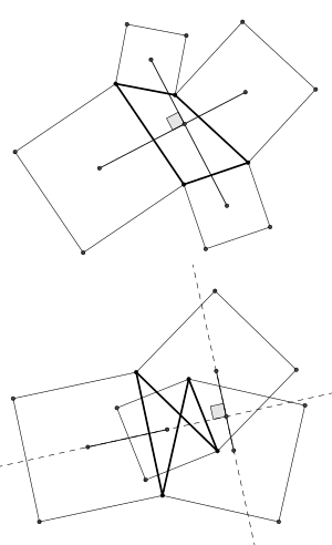 El teorema también es válido para cuadriláteros cóncavos,[3] y cuando los cuadrados se construyen internamente con respecto al cuadrilátero dado.[4] Para los cuadriláteros complejos (auto-intersecantes), las construcciones externas e internas para los cuadrados no son definibles. En este caso, el teorema es válido cuando las construcciones se llevan a cabo de una manera más general:[5]
