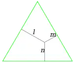 Dado que la base es común a todos los triángulos y se corresponde con el lado del triángulo ABC, es decir s, y sabiendo que las alturas de los triángulos ABP, BCP y ACP son ℓ, m y n respectivamente, obtenemos: