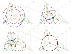 Algunos ejemplos de configuración del teorema cambiando el radio del primer círculo. En la última configuración, los círculos son pares coincidentes