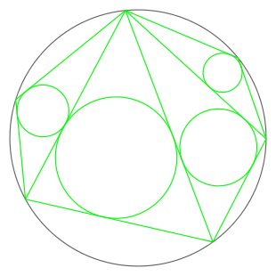 El caso del cuadrilátero se deriva de una extensión simple del teorema japonés para los cuadriláteros cíclicos, que demuestra que los dos pares de incentros correspondientes a las dos posibles triangulaciones de un cuadrilátero cíclico forman un rectángulo. Los pasos de este teorema no requieren nada más que geometría constructiva euclídea básica.[2]