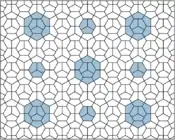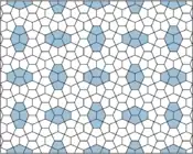 ![]() Teselado pentagonal tipo 4 con superposiciones de hexágonos semiregulares (cada uno abarcando 4 pentágonos). |