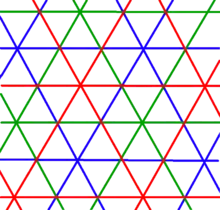 La disposición de vértices del teselado triangular se llama retícula A2.[2] Es el caso bidimensional de un panal simpléctico.