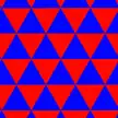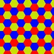 Dibujando los mosaicos coloreados como rojo en las caras originales, amarillo en los vértices originales y azul en los bordes originales, hay 8 formas, 7 que son topológicamente distintas (el teselado triangular truncado es topológicamente idéntico al teselado hexagonal).