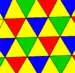 Hay 9 coloreados uniformes distintos de un teselado triangular (se obtienen nombrando los colores con índices en los 6 triángulos alrededor de un vértice: 111111, 111112, 111212, 111213, 111222, 112122, 121212, 121213, 121314). Tres de ellos se pueden derivar de otros repitiendo colores: 111212 y 111112 de 121213 combinando 1 y 3, mientras que 111213 se reduce de 121314.[1]