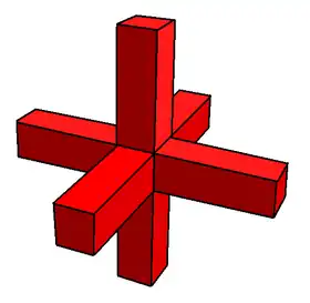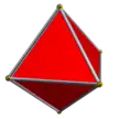 Tiene los mismos vértices y bordes que el octaedro regular. También comparte 4 de las 8 caras triangulares del octaedro, pero tiene 3 caras cuadradas adicionales que pasan por el centro del poliedro.