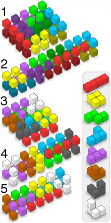| 1. 2×4×5 | tetrominós libres, con el segundo conjunto coloreado más oscuro |