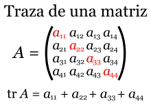 donde aij representa el elemento que está en la fila i-ésima y en la columna j-ésima de A. Para cualquier otra matriz, la traza es la suma de sus valores propios.